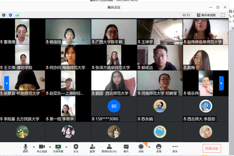 8月10日至14日,我校开云kaiyun官方网站与上海高校思想政治理论课名师工作室——徐国民工作室共同在线上举办了第四届青年马克思主义理论暑期学习班。本届学习班汇集了来自上海财经大学、青海大学、兰州大学、广西大学、安徽师范大学、西北师范大学、青岛大学等41所高校的57名优秀大学生。