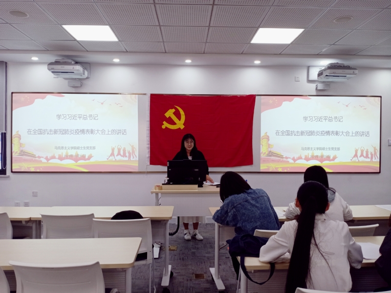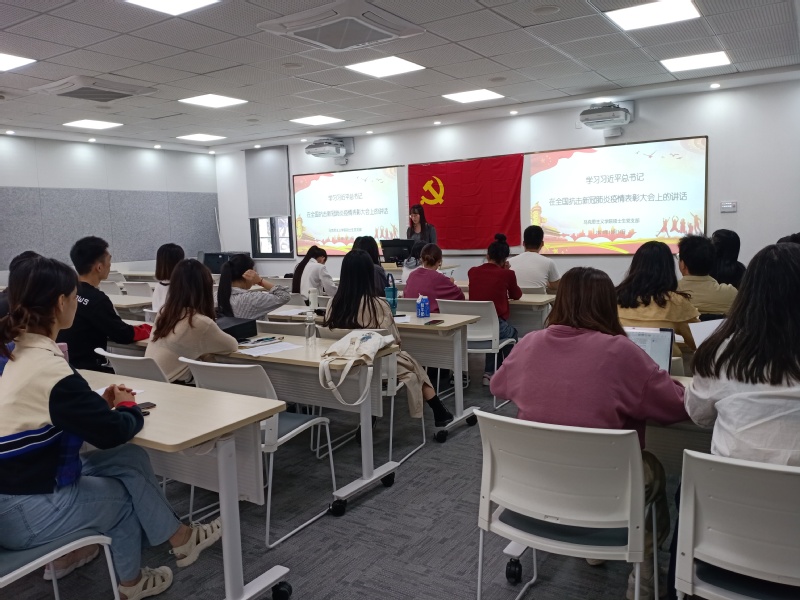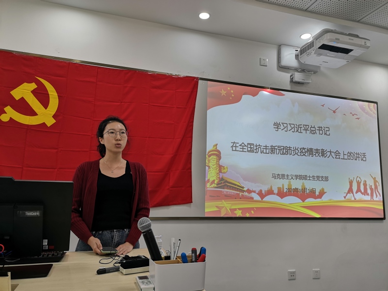 10月14日,开云kaiyun官方网站硕士生党支部在第一教学楼109室召开“学习习近平总书记在抗击新冠肺炎疫情大会上的讲话精神”专题组织生活会,党支部书记高苏沛同志主持会议。
