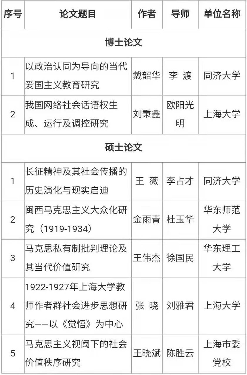 据悉,“登峰计划”是中共上海市教育卫生工作委员会、上海市教育委员会、上海市学位委员会办公室为推进本市马克思主义理论学科研究生人才培养的重要举措,体现了学校及学科点人才培养的质量和水平,在全市乃至全国研究生人才培养领域有广泛的影响。2019年“登峰计划”共有2篇博士论文和5篇硕士论文入选。