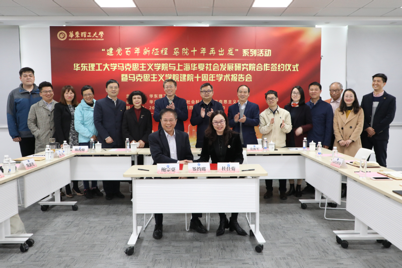 为进一步提升马克思主义学科建设、人才培养水平和上海华夏社会发展研究院服务社会能力,双方以强强联手、优势互补、互利共赢为原则,为学校中青年教师和研究生搭建合作研究平台,以项目合作方式开展互利合作。在领导和嘉宾们的共同见证下,鲍宗豪与杜仕菊代表双方签订合作框架协议。