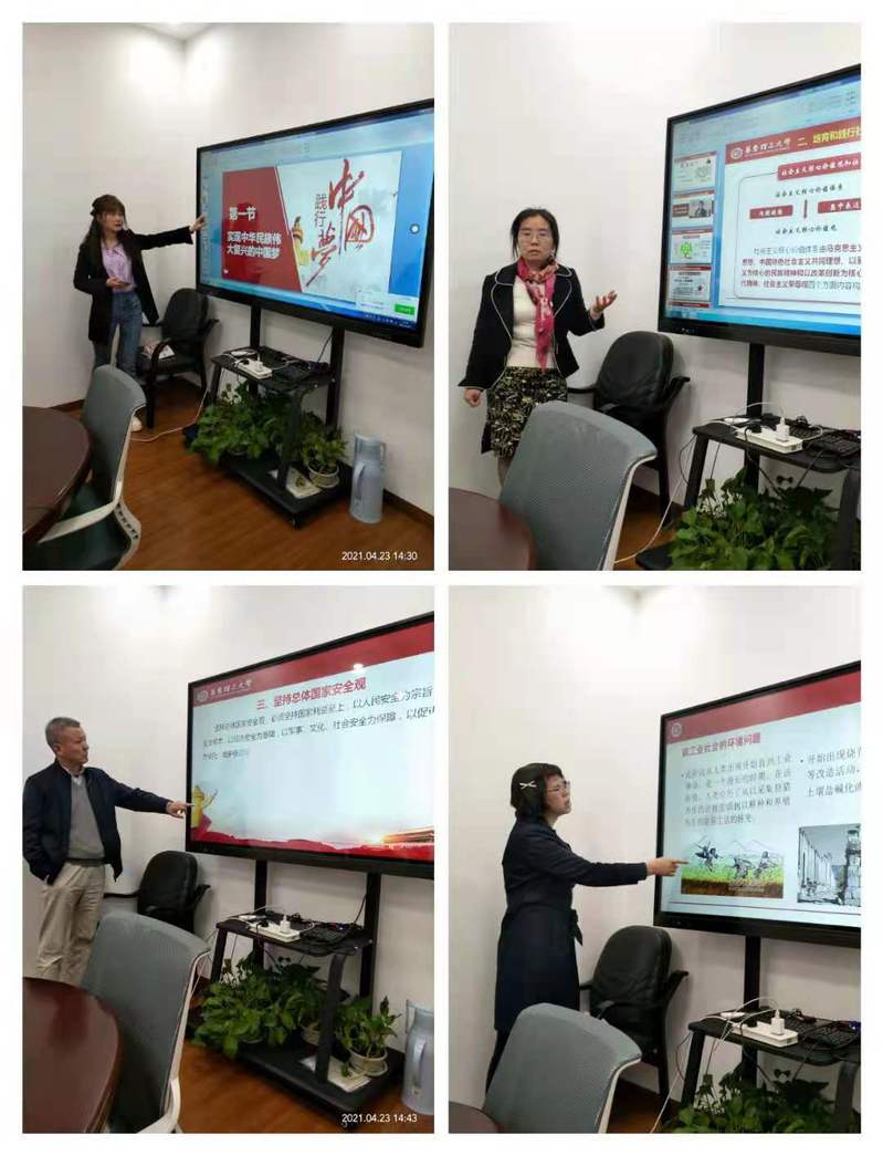 本学期,概论教研部总计开展了5次集体备课会。备课会聚焦两类活动:一是汇聚众多教师的教学资源,从教学内容、教学目标、教学方式和教学效果等方面入手,带领本教研部教师进行积极而活跃的说课、研讨和分享。实时反馈本学期各位教师教学实践中的精彩亮点,及时解决本学期各个教学班出现的突出问题。