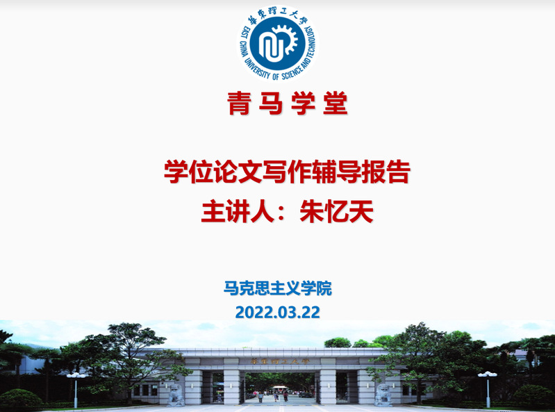 为进一步丰富广大学生的课余生活,提升学生的综合素质和能力,开云kaiyun官方网站从本学期开始开设了“青马学堂”活动。3月22日下午,第一期“青马学堂”特邀学院朱忆天教授为硕博学生作学位论文写作辅导报告。报告会由学院党委副书记杨倩主持。