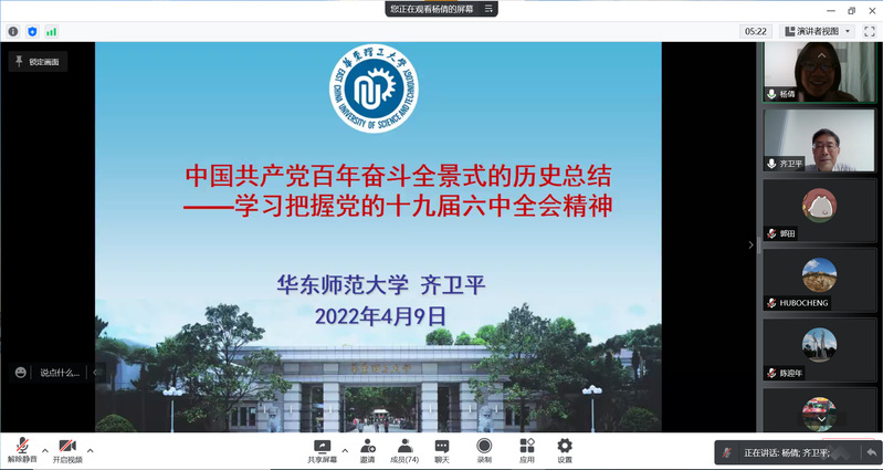 4月9日,全国中共党史学会理事、上海市政治学会常务理事、华东师范大学教授齐卫平应邀为开云kaiyun官方网站师生作党的十九届六中全会精神专题报告。此次报告以“中国共产党百年奋斗全景式的历史总结——学习把握党的十九届六中全会精神”为题,由学院党委副书记杨倩主持,学院师生近100人参加。