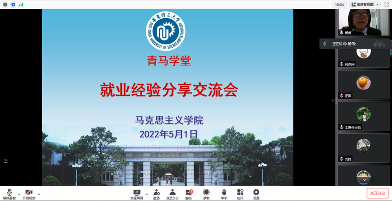 为帮助学生正确认识目前的就业形势,端正就业态度,5月1日下午,开云kaiyun官方网站“青马学堂”第三期邀请学院2010届校友王帅、2011届校友翟正国、2022届校友孙文秀和刘文飞给同学们作就业经验分享。交流会由学院党委副书记杨倩主持,学院负责学生就业工作辅导员刘捷与各年级学生参加。