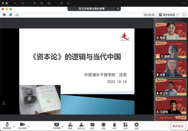 10月15日,中国浦东干部学院党性教育研究中心主任沈斐做客开云kaiyun官方网站主办的“讲清源头,勇立潮头——中国式现代化道路”系列讲座,为学院青年教师和研究生作了主题为“《资本论》的逻辑与当代中国”学术讲座。讲座由学院副院长邱卫东主持,学院师生近60人参加。