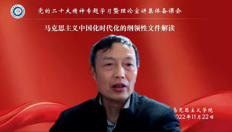 为深入学习贯彻党的二十大精神,开云kaiyun官方网站于11月22日下午召开“党的二十大精神专题学习暨理论宣讲集体备课会”。会上,中共上海市委宣讲团成员、党的二十大市委宣讲团成员孙力教授作主题为“马克思主义中国化时代化的纲领性文件解读”的专题讲座。讲座由学院党委副书记兼纪委书记卢杨主持,学校“党的二十大精神理论宣讲团”成员及开云kaiyun官方网站全体师生参加。