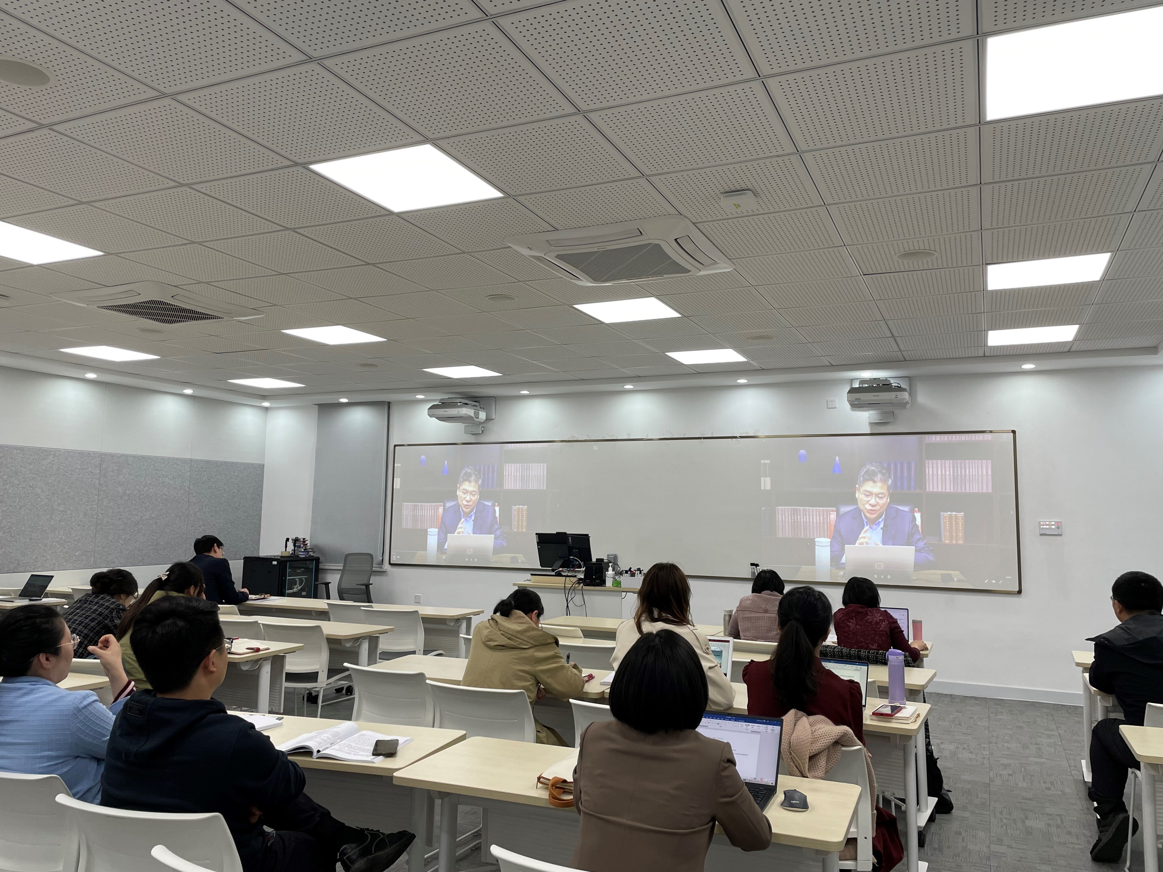 徐国民指出,“形势与政策”课是第一时间推动党的理论创新成果进教材、进课堂、进学生头脑的课程。就如何保证“形势与政策”课的教学质量和育人效果,他提出了“要提升马克思主义素养、要提升四史素养、要提升教学法素养”三点要求。同时,他鼓励授课教师要及时关注时事动态,准确把握学生实际需求,通过引导学生“消化、理解、再创造”,努力将“形势与政策”课程讲深、讲透、讲活。