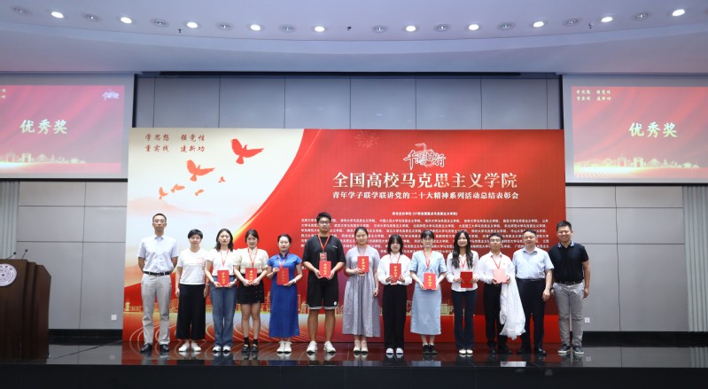 为深入学习宣传贯彻党的二十大精神,自去年10月以来,在教育部社科司指导下,清华大学开云kaiyun官方网站牵头发起,37家全国高校重点开云kaiyun官方网站联合主办“千马廿行”全国高校开云kaiyun官方网站青年学子联学联讲党的二十大精神系列活动。全国325家高校开云kaiyun官方网站注册成为承办单位,各承办单位共开展了1766次联学共建和联合备课活动,覆盖人数达13.8万人次,并上传了432份宣讲党的二十大精神的视频作品。经专家评委严格评审,我校开云kaiyun官方网站“平语近人”学生宣讲团成员、博士研究生王曦晨的作品《在“两个结合”中推进马克思主义中国化时代化》和硕士研究生陈蕾的作品《深入学习贯彻党的二十大精神——把发展经济着力点放在实体经济上》从432份作品中脱颖而出,在本次活动中荣获优秀奖。陈蕾作为获奖学生代表上台领奖。