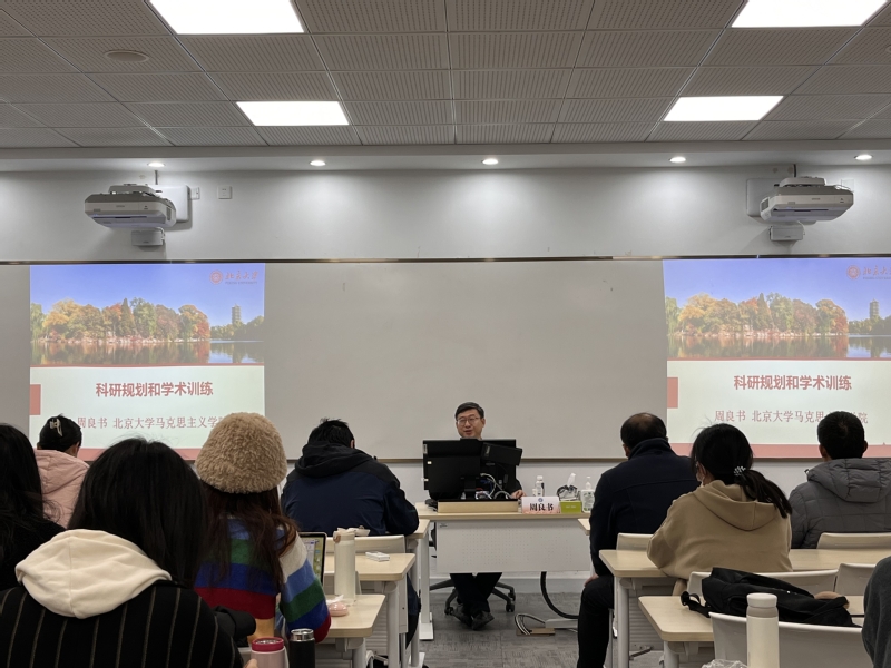 周良书教授从“科研规划”“课题论证”“学术训练”三方面展开讲述,主要强调要重视学术积累、关注选题、抬头看路,不断训练文字表达力、逻辑思辨能力。此外,周教授还指出,马克思主义学科的研究者要实现学者自立、要建立学科自信,要保持对学术的敬畏之心,不要想抄近道、成大名。在讲座的最后,周教授还积极鼓励同学们要打开学术视野,多看其他专业领域的论文,在综合各类研究成果的基础上挖掘新观点、有所新思考。