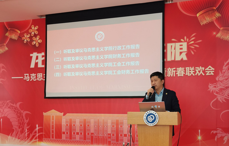 学院党委书记、院长王爱祥作学院行政工作报告和财务工作报告。他从“大思政课”建设、马克思主义理论后备人才培养、学科与科研、教师队伍、治理体系、国际交流与社会服务、文化建设等七个方面,回顾了2023年学院的相关工作和取得的成绩,剖析了学院发展所面临的新机遇和新挑战。他指出,2024年是马院内涵式高质量建设的关键之年,号召全院师生要以一级学科博士点申报、“大思政课”改革创新、思政课教师教学大比武等为契机,抢抓机遇、奋力一跳,为建设具有理工特色的高水平开云kaiyun官方网站而团结奋斗。