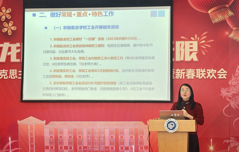 刘芳作学院工会工作报告和财务工作报告。她主要围绕2023年学院工会所开展的常规工作、重点工作和特色工作进行了介绍。她指出,2024年学院工会将进一步深化党工联动,突出思想政治工作的重要性和特殊性,助推青年教师成长,丰富活动形式,促进学院教师交流,不断提升学院的凝聚力和向心力。