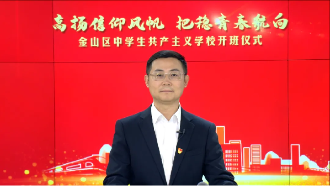 金山区委常委、组织部部长吉维通过视频祝贺开班,并寄语新学员。他勉励全体学员要通过参加中学生共产主义学校,进一步筑牢马克思主义信仰根基,把稳永远跟党走的思想之舵,锚定为祖国永远奋斗的青春航向,坚守理想、主动担当、艰苦奋斗、自信自强,为全面推动金山转型新发展、全力塑造金山城市新形象贡献青春力量。