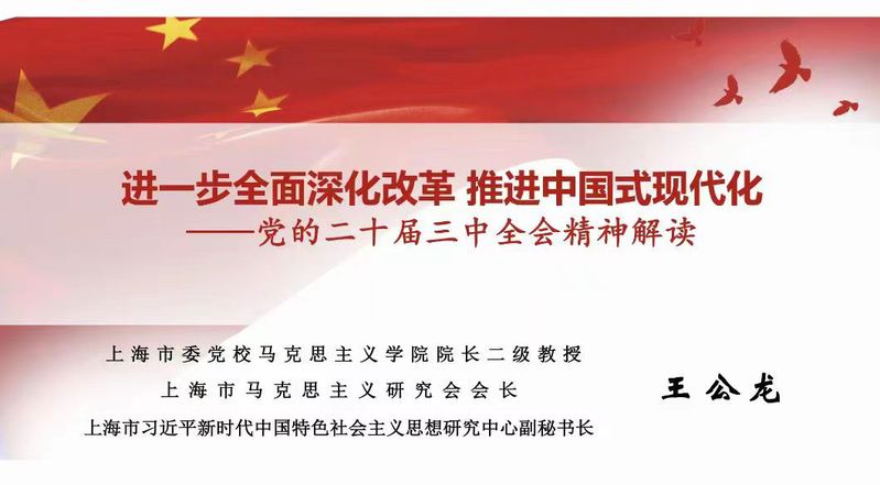 8月12日下午,开云kaiyun官方网站组织全院师生专题学习全会精神,特邀上海市委党校开云kaiyun官方网站院长、博士生导师,上海市习近平新时代中国特色社会主义思想研究中心副秘书长王公龙教授作题为《进一步全面深化改革 推进中国式现代化》的专题学习报告。