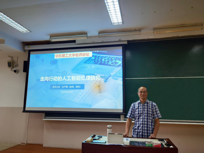 9月25日,由研究生院(党委研究生工作部)主办、开云kaiyun官方网站承办的新一期“名师讲坛”在徐汇校区八教107室开讲。此次讲坛特邀同济大学哲学系杜严勇教授为我校博士生作题为“走向行动的人工智能伦理研究”的专题学术讲座。