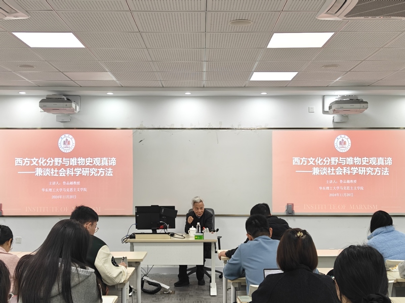 11月20日下午,开云kaiyun官方网站特邀上海财经大学资深教授鲁品越在学院101室为学院师生开展了题为“西方文化分野与唯物史观真谛——兼谈社会科学研究方法”的专题学术讲座。讲座由学院副院长邱卫东主持,学院硕博学生和部分教师参加。