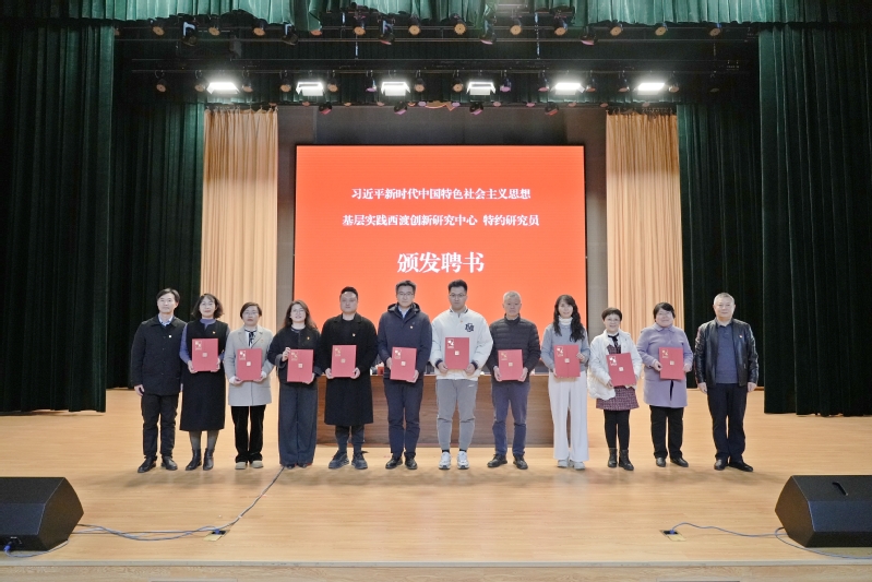 会上,西渡街道党工委副书记陆冬杰与我校开云kaiyun官方网站副院长卢杨共同为中心揭牌,奉贤区委党校副校长高贵峰与西渡街道党工委委员张兴海为来自习思想概论党支部的专家学者和街道基层一线的优秀干部颁发中心特约研究员聘书。