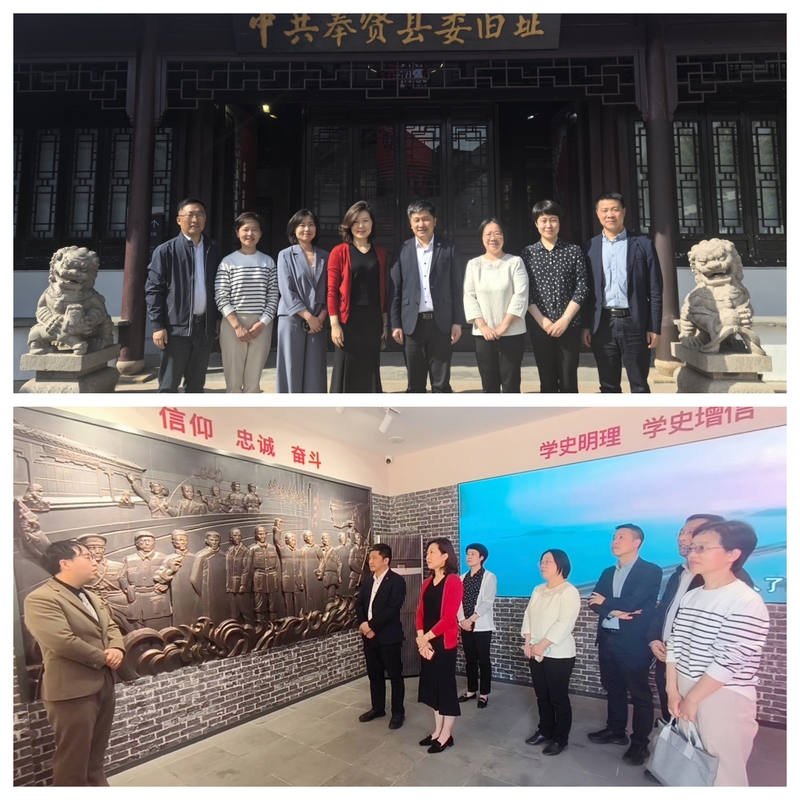 联组学习之后,双方来到上海市爱国主义教育基地——中共奉贤县委旧址展示馆进行现场教学,探访革命足迹,感受红色文化力量。在讲解员的带领下,双方一同学习了新民主主义革命时期奉贤党史上的重要人物和重要事件,在鲜活的图片和实物展示中接受党性教育,进一步坚定理想信念,锤炼忠诚品格。