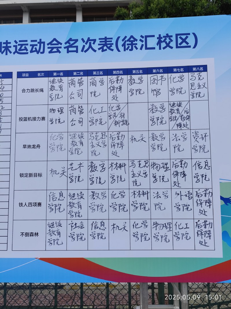 本次趣味运动会共设置六项比赛,马院教师代表队依次积极参与了“旱地龙舟”“不倒森林”“合力跳长绳”“锁定新目标”“铁人四项赛”“投篮机接力赛”等六个项目,最终在“旱地龙舟”凭借出色的配合与顽强的冲劲,荣获该项目第三名,赢得满场喝彩;在“锁定新目标”凭借稳定的发挥和精准的投掷,马院代表队成功拿下本项比赛的第五名,展现了不俗的专注力和稳定心态;最后在“合力跳长绳”中,凭借默契配合、步调一致,最终获得了本项目第八名的好成绩。这是马院代表队参加趣味运动会的最好成绩,充分展现出马院老师们的激情、团结与坚持,是新时代马院精神风貌的真实写照。