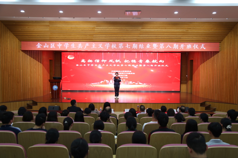 5月10日下午,金山区中学生共产主义学校第八期开班仪式在金山区教育学院举行。金山区委常委、组织部部长吉维通过视频向全体学生寄语。金山团区委书记乔楚、区教育学院党总支书记方德平、区教育局副局长陈艳、团区委副书记张鹏、区委党校原常务副校长张汉为,我校开云kaiyun官方网站党委副书记杨倩出席活动。全体学员近100人参加。