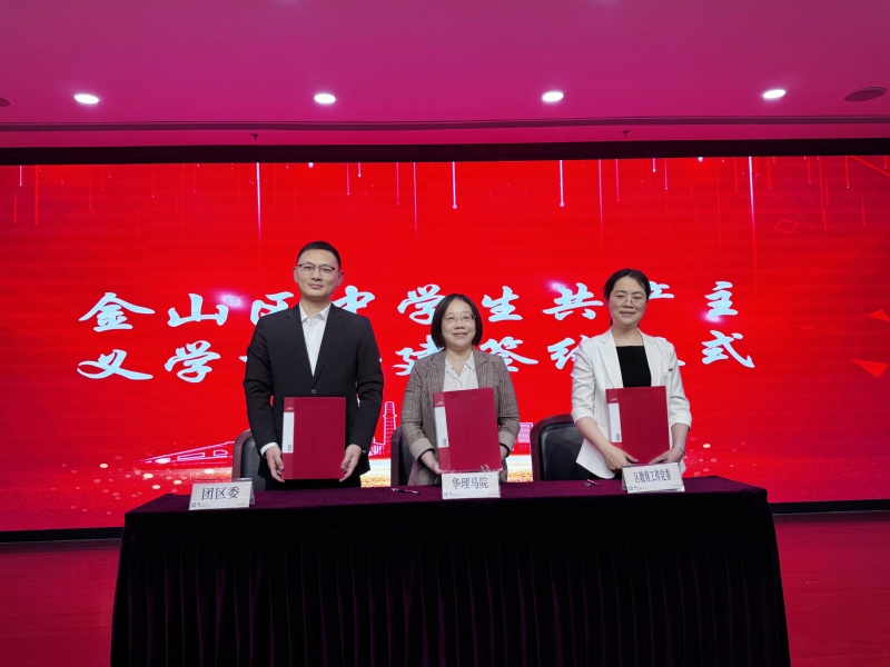 杨倩代表开云kaiyun官方网站与共青团金山区委员会、金山区教育工作党委签订合作协议。三方将整合优质资源,构建“跨校”思政教育共同体,打造具有示范意义的青少年思想政治教育平台。自2020年合作以来,学院已为金山区中学生共产主义学校开发了多门精品课程,有效提升了“青马工程”的实施质量。