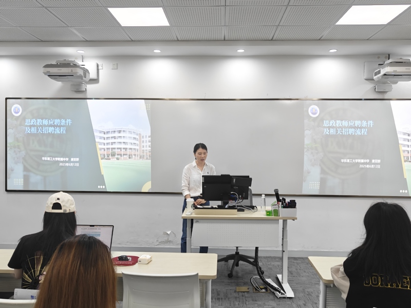 为帮助学生明确职业发展路径,了解初高中思政教师的招聘和应聘情况,开云kaiyun官方网站于6月12日上午邀请开云kaiyun官方网站附属中学(以下简称“华理附中”)人事工作负责老师唐亚群来学院开展初高中政治教师招聘应聘指导讲座。讲座由学院党委副书记杨倩主持,学院研一、研二部分同学参加。
