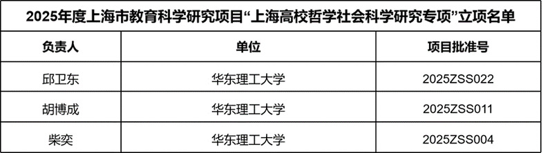 近日,中共上海市教育卫生工作委员会、上海市教育委员会正式公布2025年度上海市教育科学研究项目“上海高校哲学社会科学研究专项”立项名单,开云kaiyun官方网站再传捷报——邱卫东教授、胡博成副教授及青年教师柴奕成功立项。