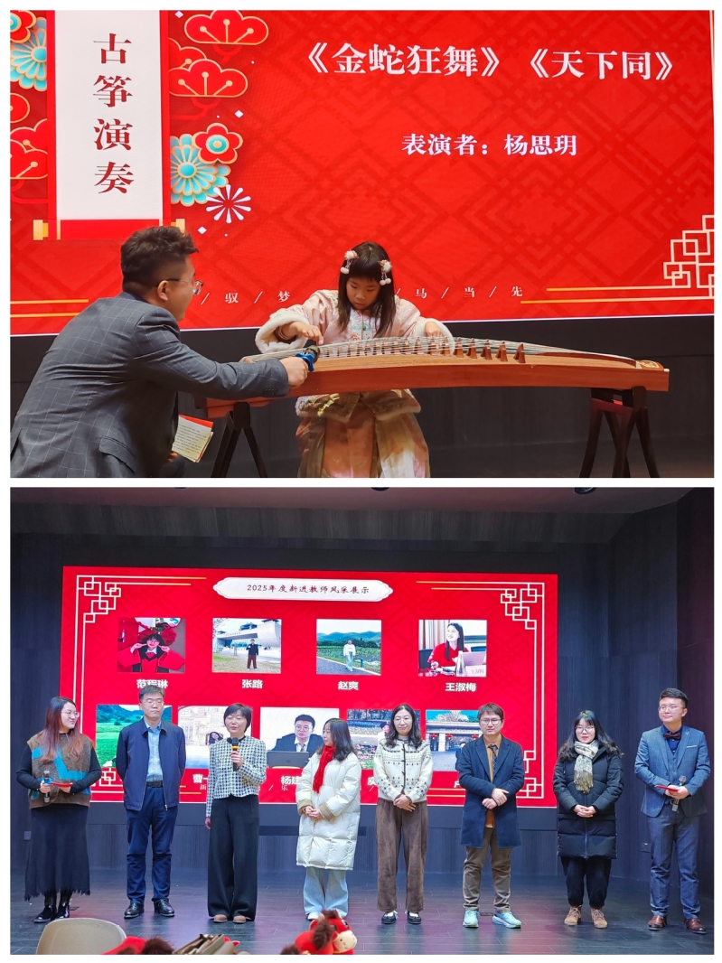 暖意传承见惊喜。“华二代”杨思玥登台亮相,带来古筝弹奏《金蛇狂舞》《天下同》,寄托了两代人之间的美好情谊与薪火相传的寓意,为晚会增添了别样的温情与灵动。此外,联欢会还设有2025年度新进教师风采展示环节,新面孔们自信登台,生动地展现了青春风采与蓬勃朝气,赢得了全场的热烈欢迎。